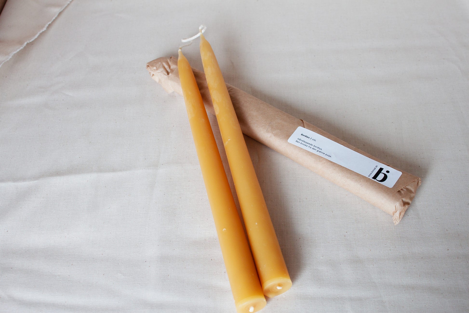 Tvey handdyppað borðljós úr reinum býfluguvaksi.