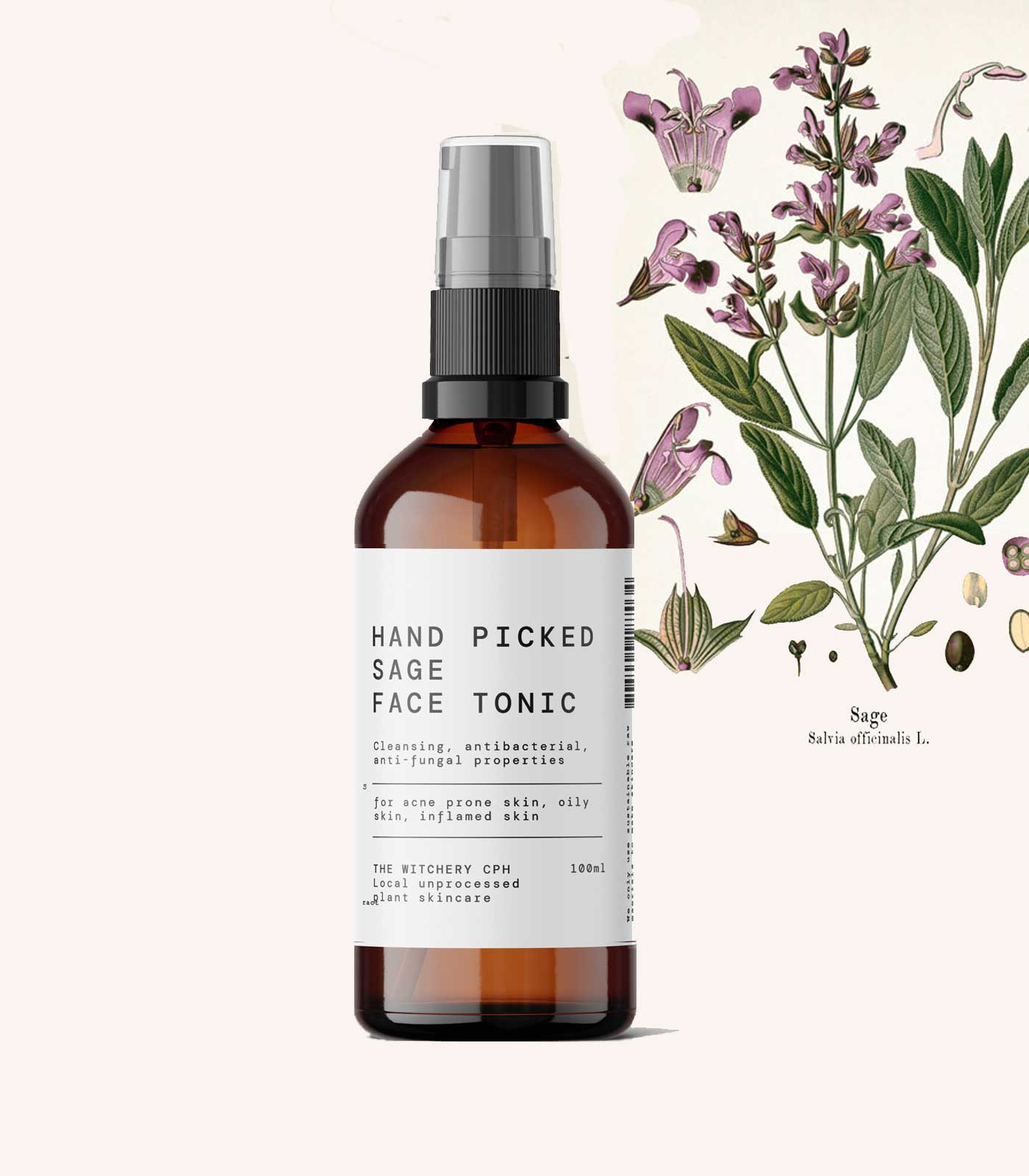 Hetta húðtonikið við vistfrøðiligari salviu er gjørt við at dampdistillerað salviubløð. Salvia er ein planta sum er kend fyri sínar antibakteriellu og reinsandi eginleikar. Viðmæld til oljuta húð, akna og í heitari veðurlagi. Spraya á reina húð, áðrenn tú smyr við andlitsolju.